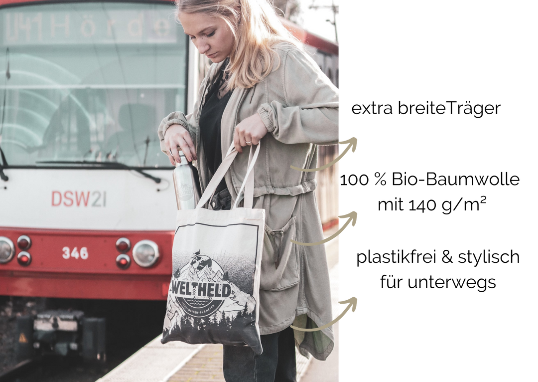 Du suchst einen Stoffbeutel in Bio-Qualität? Einen, der auch mal einen richtig schweren Einkauf nach Hause bringt, ohne dabei in deine Schultern zu schneiden oder die Träger zu verdrehen?